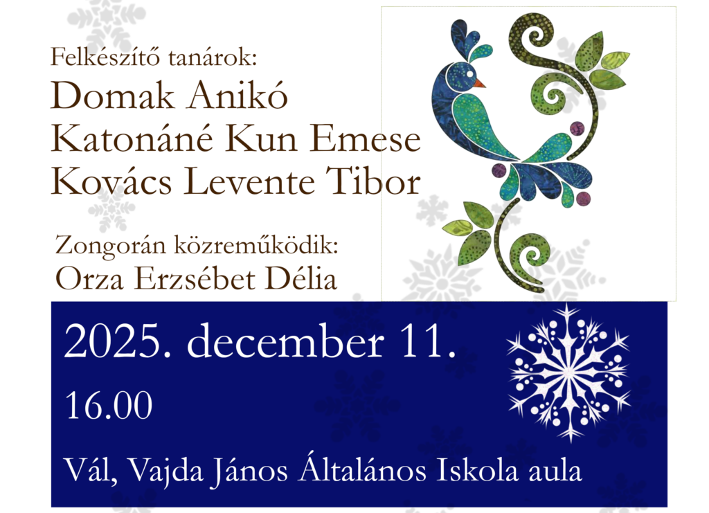 Kovács Tibor és Farkas Tamás növendékeinek koncertje 2025. 12. 11-én 18.00 órakor a Malom táncteremben