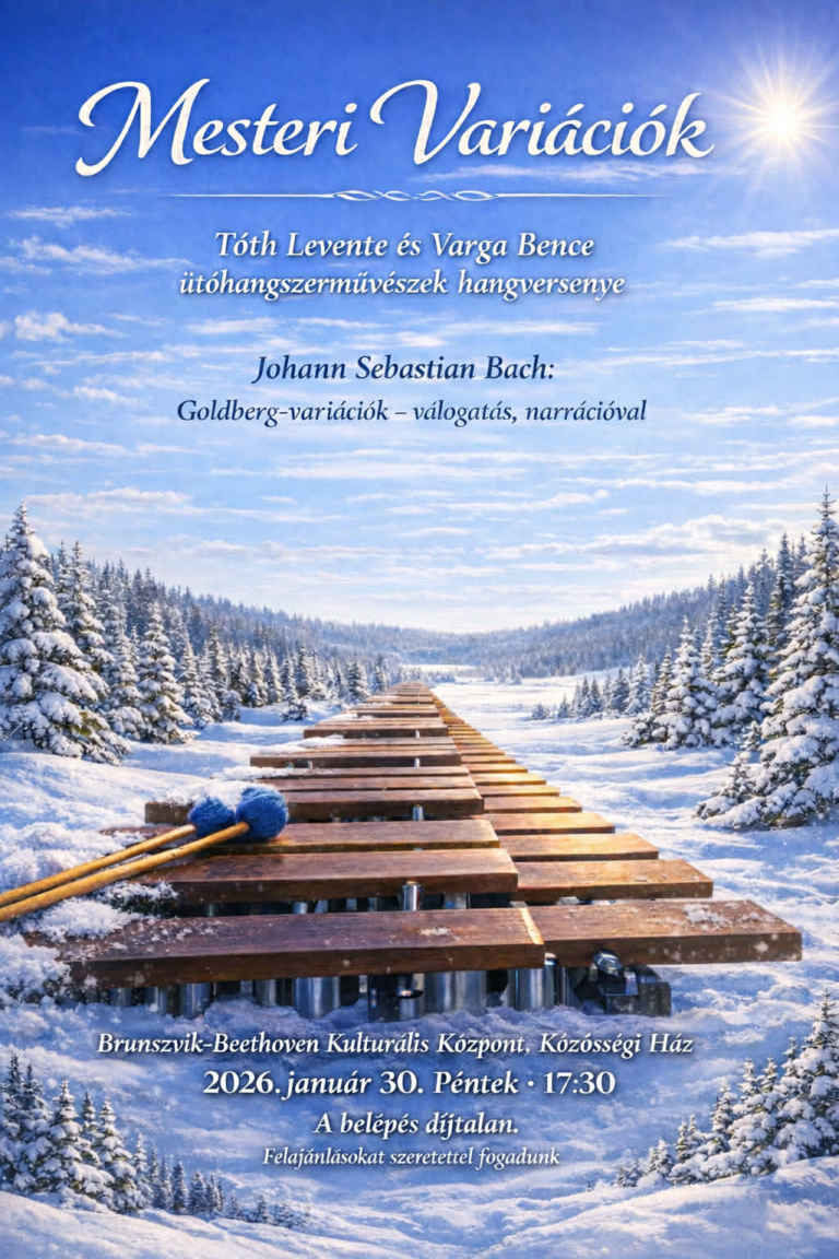 Klasszikus zene Holnap rendkívüli koncert a BBK-ban! Bach marimbákon! Fúvós tanszaki hangverseny Hegedű tanszaki hangverseny Ercsi tagozat tanszaki hangversenye Barokk advent – a magánének tanszak koncertje 11. 27-én Barokk advent – a magánének tanszak koncertje 11. 27-én